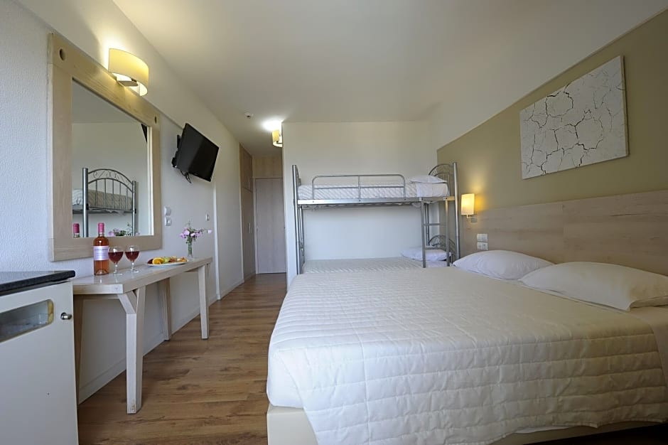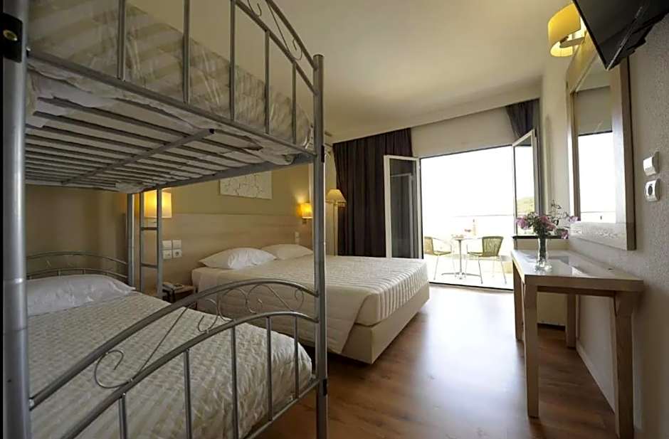 Family Room with Bunk Bed and sea view is 226 square feet and includes either a double bed 131-150 width, bunk beds, or 2 single beds 80-130 width plus balcony, satellite tv , hairdryer, and safe.