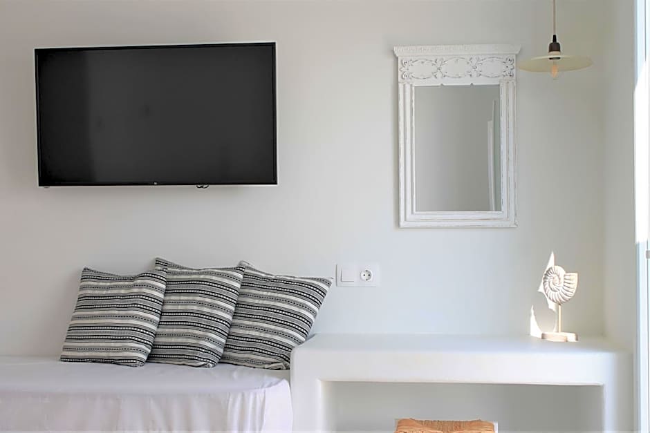 Well located property with the beach out front, lots of tavernas and restaurants and a couple of little super markets all within walking distance. The staff were friendly and helpful. The room was very clean and spacious with plates and bowls etc. Lots of parking directly out the front and easy drive down to. The local beach was quiet with access to lots of organised beach clubs slightly further along