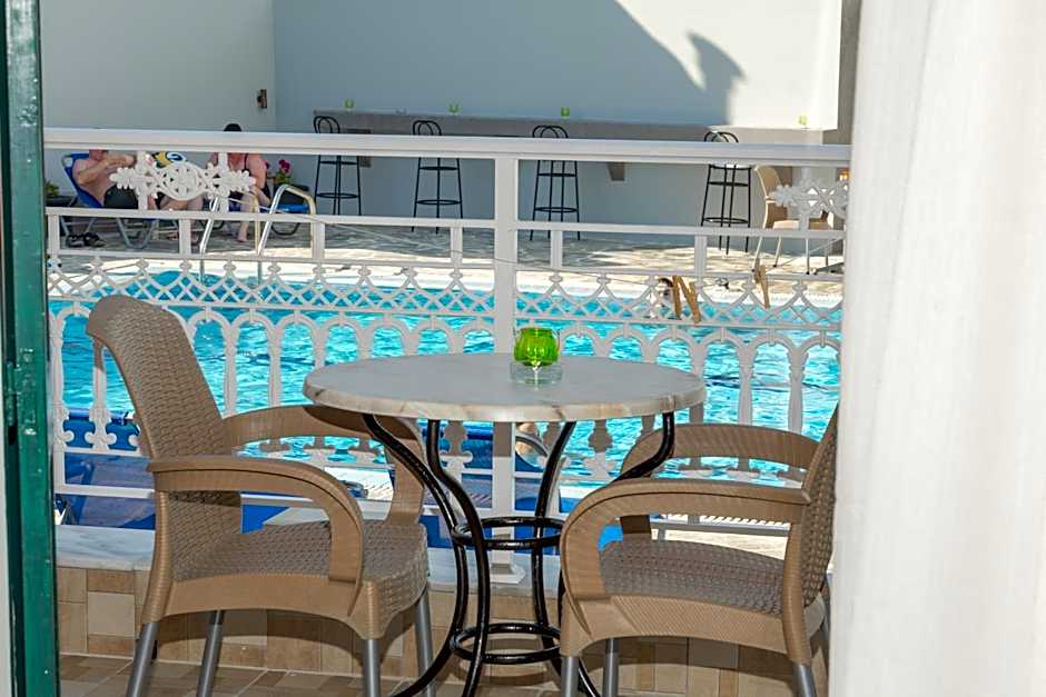 Lovely family run studios, spotlessly clean and in a great location. Everything you need including a hairdryer and kettle also free Wifi and Air Con.. The room we had had a totally separate kitchen where you can close the door. Great view over the lovely pool area. Snack bar on site as well as a supermarket. Will definitely return here again - thankyou for a lovely stay :-)