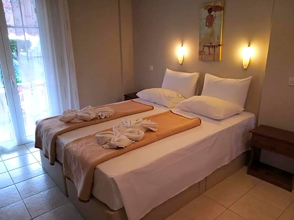 Overlooking the Ionian Sea from its furnished balcony, 1640 feet from Kalamia Beach, this air-conditioned studio comes with a fridge, kitchenette a safe and free Wi-Fi. This room type can accommodate an extra bed, upon request with extra charge.
