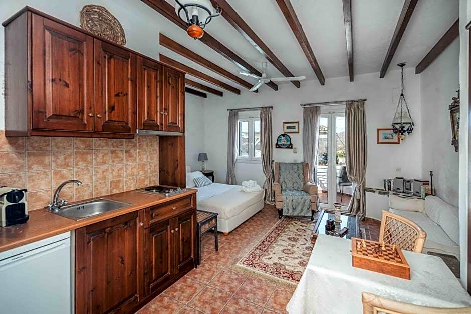 We rented the apartment which had a huge private terrace offering sun and shade (sunbeds privided) and fantastic view over sea. Interior was cool and spacious with sitting and bedroom areas, plus a small kitchenette for preparing basic meals. Towels and sheets changed regularly. Shared pool was sparkling clean and refreshing, and we often had it to ourselves (last week of June). 'Basic' breakfast, included in price and brought to our terrace every morning, included fruit juice, fruit, bread, homemade jam and local biscuits. Option to upgrade breakfast if required. Selina (sorry if spelt wrong) was very friendly and helpful. The studios provided transfers (extra cost) to and from airport, which was a godsend since our flight from Athens was delayed. Apartment was in a quiet and peaceful area of town yet only 5 mins walk down to windmills, shops, restaurants and bars and slightly longer walk uphill to the castle. Its worth the walk to the castle in the evening to try the two restaurants and the Castro bar (directly below castle walls). Would try to book this apartment if we ever return to Astpalea.