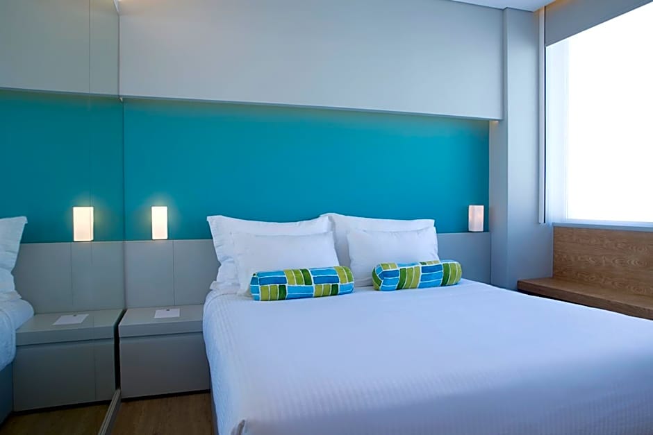 Fitted with hardwood floors, vibrant colors and minimal decor, this apartment has a fridge, and a modern bathroom with walk-in shower. It includes air conditioning, a flat-screen TV and free WiFi.