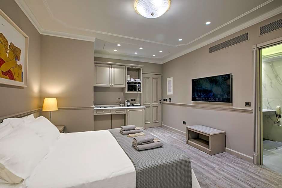 Fitted with parquet floors and well-chosen furnishings, this elegantly decorated studio has a kitchenette and comes equipped with a flat-screen TV, air conditioning, free WiFi and safe. It includes a private, modern bathroom with walk-in shower or shower cabin.