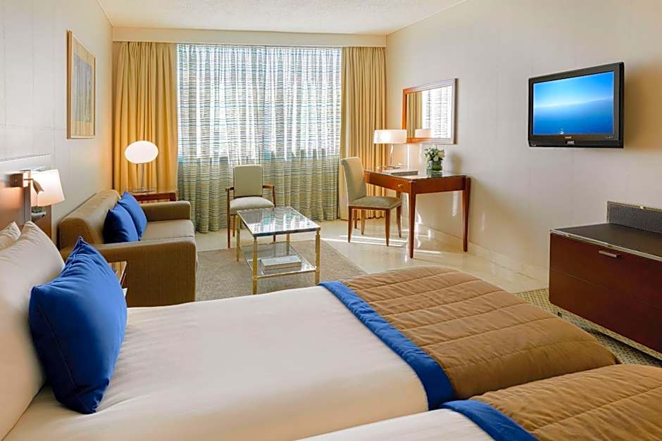 Providing free toiletries and bathrobes, this twin room includes a private bathroom with a bath, a shower and a bidet. The spacious air-conditioned twin room provides a TV with cable channels, soundproof walls, a mini-bar, a tea and coffee maker as well as city views. The unit offers 2 beds.