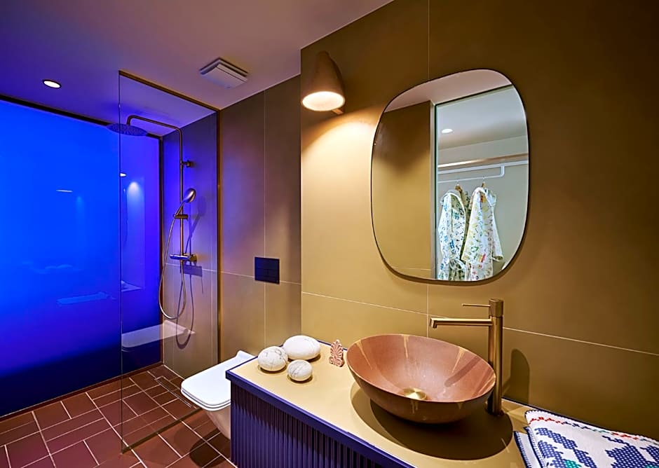 The LOOM uses materials and colors to create a natural connection to its location in the Keramikos district. Beautifully designed rooms with high-quality interiors that do not appear defective and shabby after a short time, as is often the case in "stylish" Athenian hotels. The bathroom is also of high quality and well thought out. I was very pleased with the more Greek, less intercontinental breakfast. The Kerameikos subway station is less than 10 minutes away on foot and serves both Piraeus and the airport. I always felt comfortable in the area; there are many cafes, interesting restaurants and galleries. The hotel is particularly well located for a visit to the two excellent restaurants CTC Urban and Almeria.