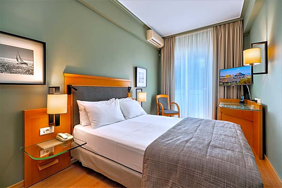Acropolis View Deluxe room is 194 square feet and includes either a double bed 131-150 width or 2 single beds 80-130 width.