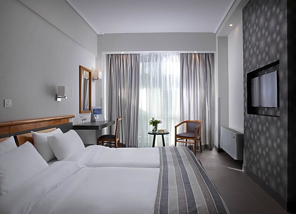 Guest rooms come equipped with air conditioning, free toiletries, balconies and soundproofing, with options that include extra-long beds. The hotel is wheelchair accessible and offers non-smoking rooms, an elevator and 24-hour front desk service, plus conveniences like a tour desk and room service to help plan Athens explorations.