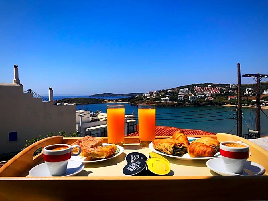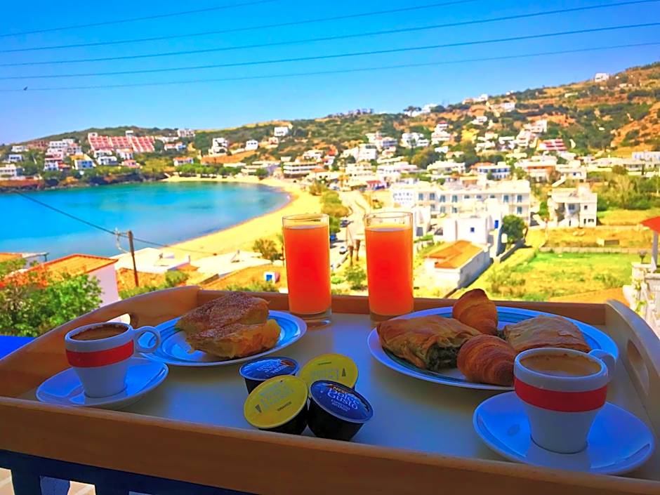 The view over Batsi from our very clean, comfortable apartments was great, and in the late afternoon the sun shone into the terrace balconies. We loved the breakfast - delivered with a smile every morning by wonderful Melita. Everyday there was something fresh from the local bakery, and one morning a bowl of yoghurt, walnuts and honey. The spinach, cheese and apple pies were particularly delicious, and the coffee pods were very welcome - they made good coffee. Beds comfortable, hot water 24/7, and Magda was very helpful in the office letting us know about the complimentary sun beds. She also organised ferry tickets and a taxi for us. She is a gem!