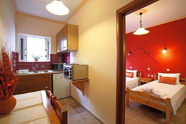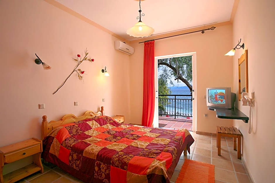 Amazing complex with two bedroom apartments in front of a small beach with clean water. 7 minutes walking distance from the centre of Benitses. Staff exceed expectations. Polite , professional , always ready to help with a warm smile ! The apartment was good size with comfy beds two tv and two air conditioners and a kitchen with everything we need it. On our arrival the refrigerator was filled with milk , bread, cheese , ham and jam. Great gesture from the owner . A very polite lady was taking care of our apartment every day .
