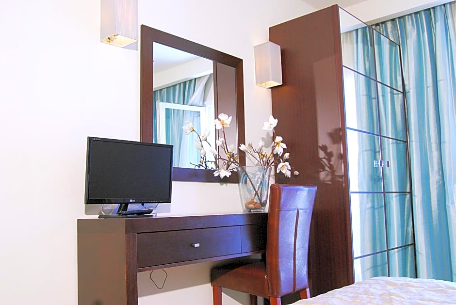 A very modern, clean and charming hotel. located right on the beach (you can practically walk out of the reception onto the beach) but also on the street full of shops and taverns - with very friendly staff, excellent breakfast and fast internet.