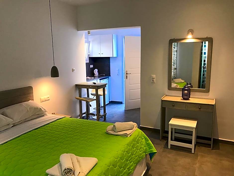 Each suite is equipped with air conditioning, a private bathroom, a kitchenette, and a balcony or terrace, ensuring comfort and relaxation throughout your stay. With soundproof rooms, a kids' pool, and a sun deck available as well, Alianthos Suites provides the perfect blend of tranquility and fun for a truly memorable Greek getaway.