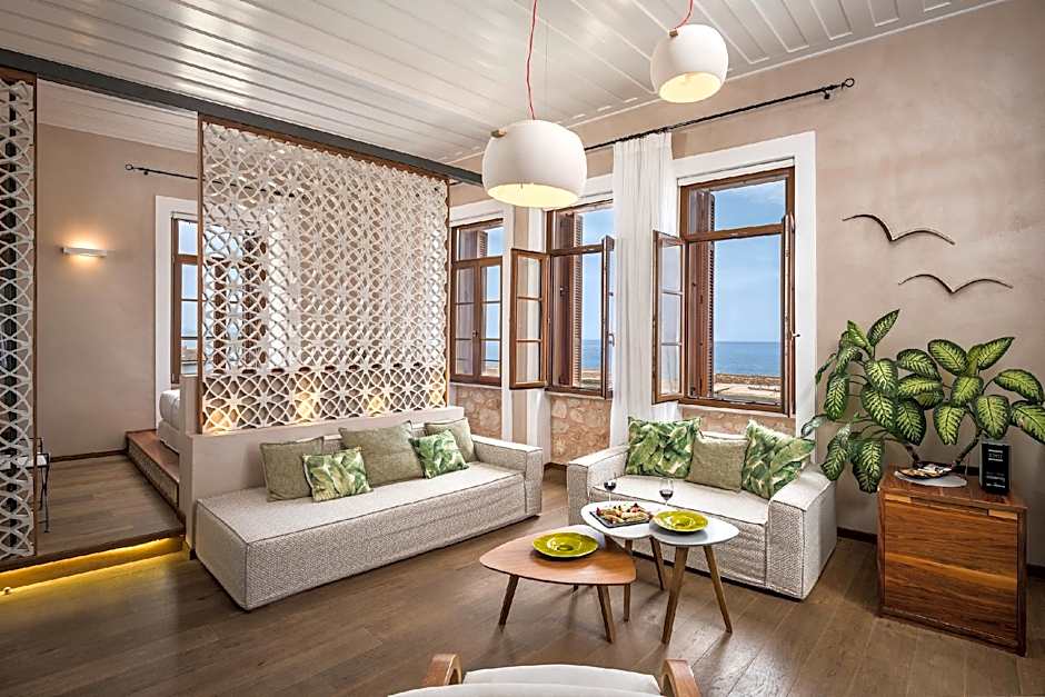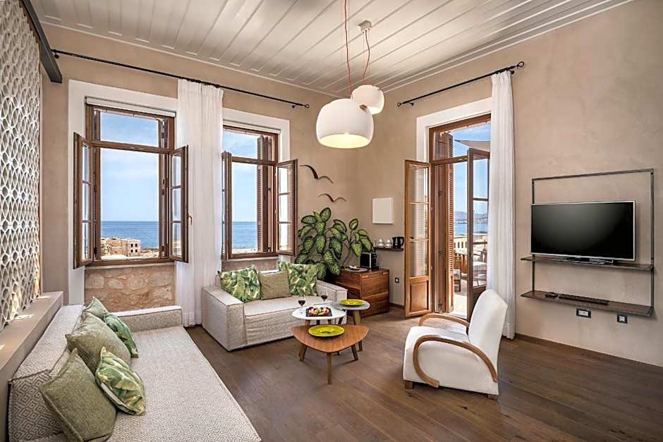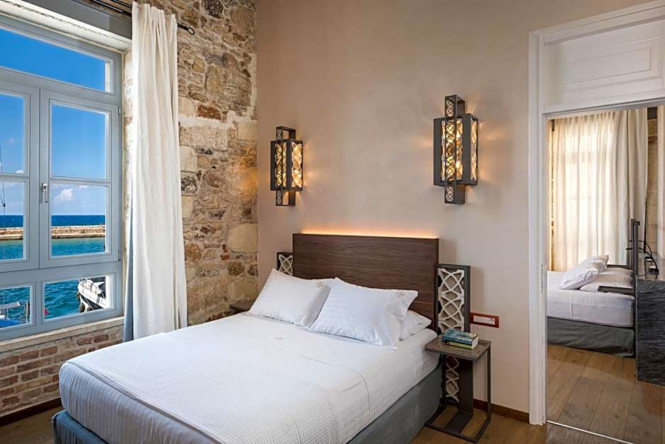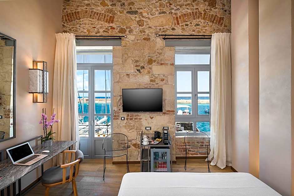 Fitted with a spa bath, this elegantly decorated and air-conditioned room offers a flat-screen, satellite TV and a mini-bar. Located on the upper floor and fitted with cement details, it features partial Cretan Sea and Megalo Arsenali views from its windows. Free WiFi is provided. Please note that this room type cannot accommodate any extra beds or baby cot.