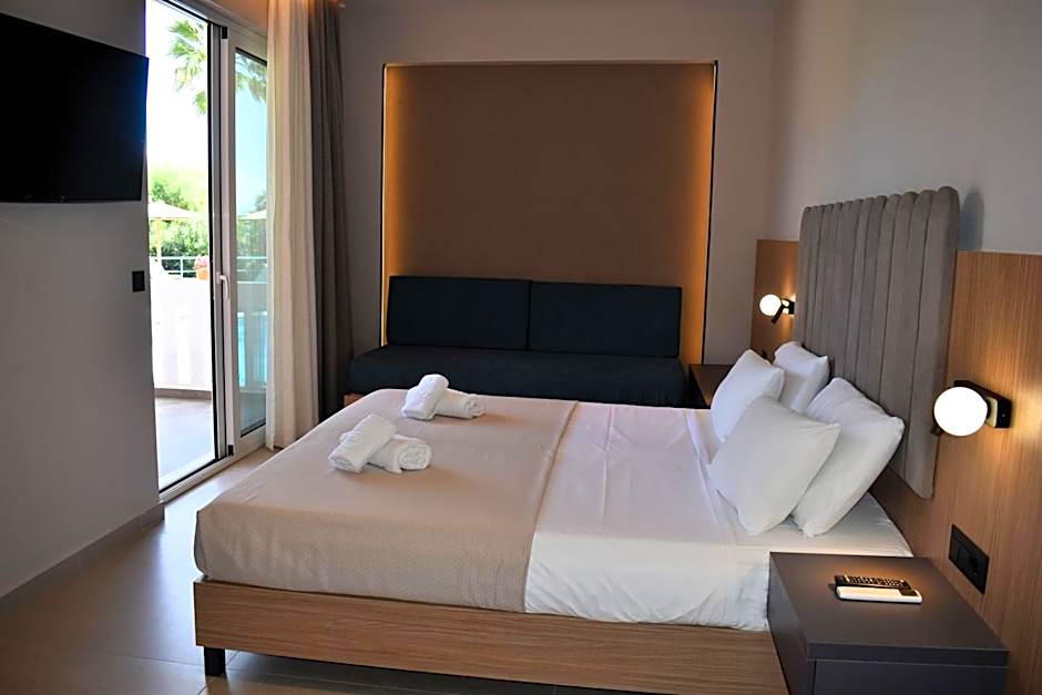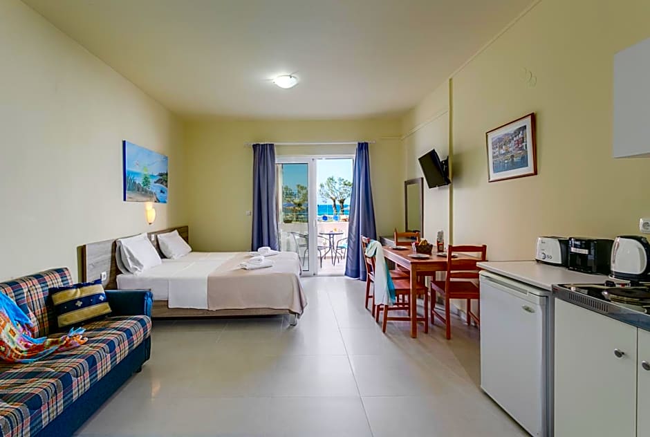 Excellent hotel by the sandy beach with warm Greek hospitality. Staff is amazing and super flexible, they could even arrange early check in and late check out for us. Room was very clean and big and had a small kitchen which was convenient when making breakfast. By the pool there is a restaurant where you can also enjoy breakfast/lunch. Many restaurants and supermarkets around the hotel area. If you have a car they provide free parking, in late May-early June we could easily find space for our car. Very good value for the money!