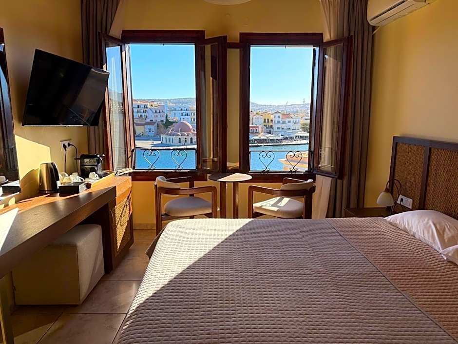 offers two types of cozy rooms for guests to choose from during their stay in Chaniá, Greece. The Standard room can accommodate 2 adults and 1 child comfortably, while the Sea View room also accommodates the same number of guests. Both rooms have a charming and comfortable ambiance that provides a relaxing retreat after a day of exploring the city.