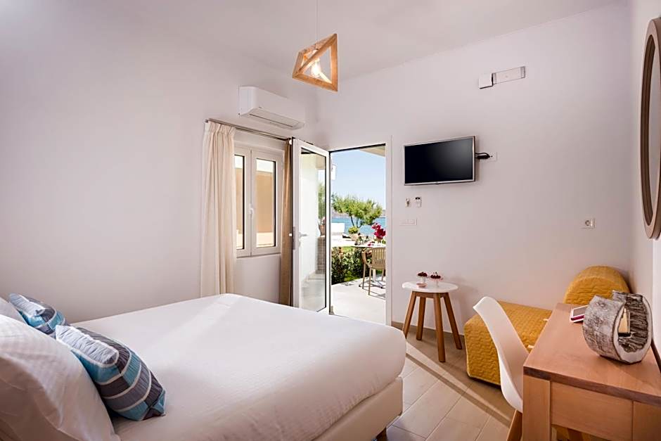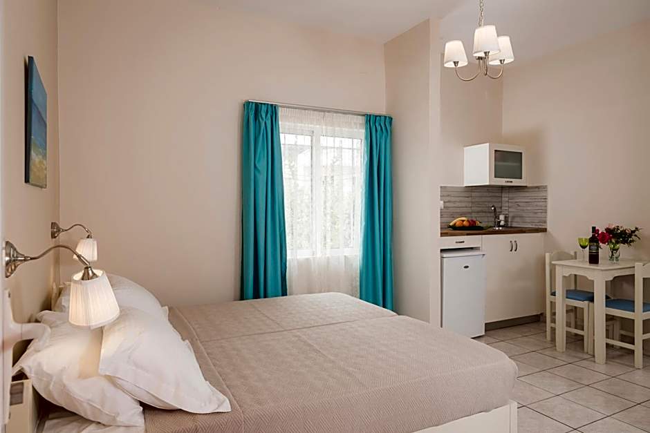 Tastefully decorated and air-conditioned studio with orthopedic mattresses, modern kitchen and bathroom, and black-out curtains. Free WiFi is available.These Studios opens to a garden and sea view shared balcony with outdoor furniture.