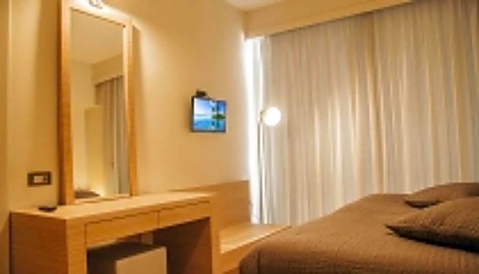 We stayed in a studio room with small kitchenette area. This is a real bonus as it allowed us to get supplies from the supermarket onsite to prepare breakfasts etc. The balcony had a sea view and was a lovely place to relax over breakfast and for evening drinks. Everything was spotless and staff very helpful and friendly. You can eat breakfast and lunch out on the terrace overlooking the sea for a very reasonably price. The quality and presentation of the food is amongst the best I have seen in a hotel of this standard. Everything is walkable - the hotel is more or less on the beach, there are some fabulous local restaurants and bars. You can walk along the seafront to the beautiful venetian harbour which is stunning. I would highly recommend this place for a week's stay.