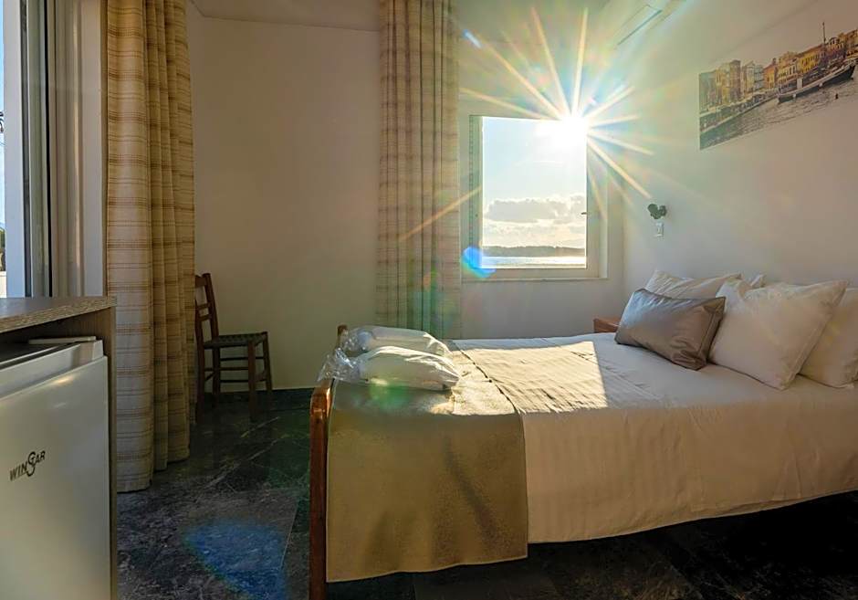 The hospitality of the staff and owners is amazing. We booked a single room by mistake and within 24hrs from the reservation, Rafaela confirmed we could stay 2 in a single room and paying a price difference. Upon arrival, she had managed to move us to a normal sized room for 2 for 4 nights out of 7 and the rest to a single room but with a bigger bed. I have to say, this was one of the best customer care experience with hotels. The hotel is very clean, staff is very helpful, they have a good breakfast. As positioning goes, the hotel has direct access to the sea right in front, restaurants nearby (5-10 min walk).