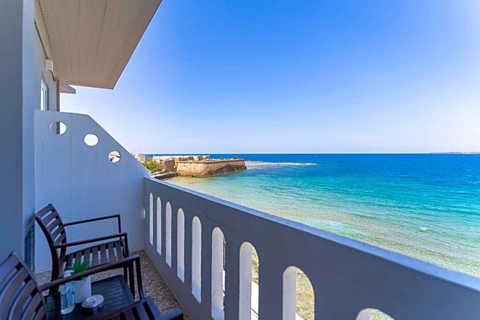 Comfortable bed, nice scenic view of the sea and fort from the balcony. Central but yet not too central location, thus not that noisy. There is a free parking right next to the hotel. It’s located right above a lot of nice restaurants, you can have breakfast/lunch ect. at. Budget friendly. Helpful staff - we had a problem entering the building upon arriving, hat to call the hosts - they answered right away and were helpful despite of the late hour. There are a lot of stairs to overcome to your room (like almost everywhere in Crete..) but! not like most properties there was a small but functional elevator you could use for your luggage! So that is a plus!