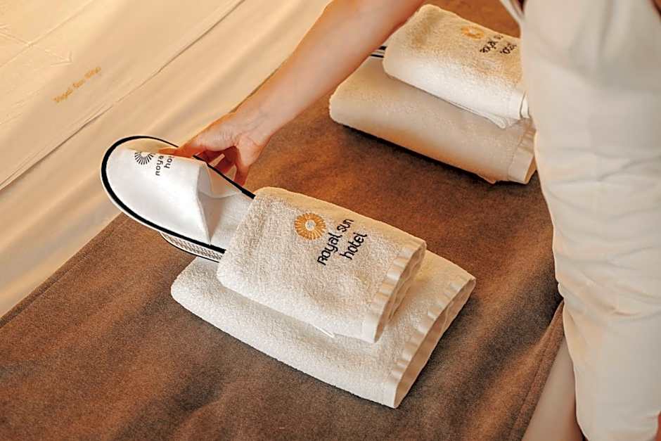 What’s more, the Royal Sun has a buffet of amenities to cater to your every whim. Whether you're a fitness enthusiast ready to pump some iron at the free fitness center, a beach lover seeking sun-soaked loungers and umbrellas, or a gourmet looking to savor delectable dishes at the on-site restaurant, there's never a dull moment here! And don’t forget to soak up the stunning views from the sun deck or enjoy a cocktail at the bar while relishing the beautiful garden surroundings.