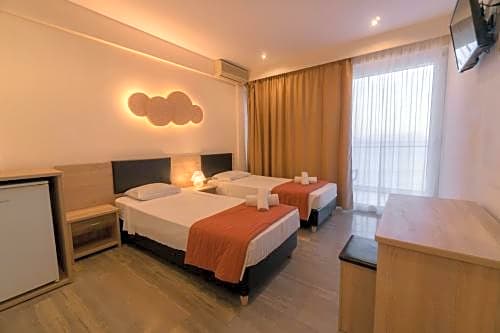 - small and not well-cleaned rooms - beach towels only with deposit and cash (1€ per day) - bicycles were extremely expensive - food was the same taste every day - there was no coctails at the bar - only f.e. vodka with tonic, gin, brandy, ouzo, white rum, wite and red wine and one beer, but when you wanted to have a coctail prepared it was not possible (no brown sugar, no mint, no lemon, no lime etc.)