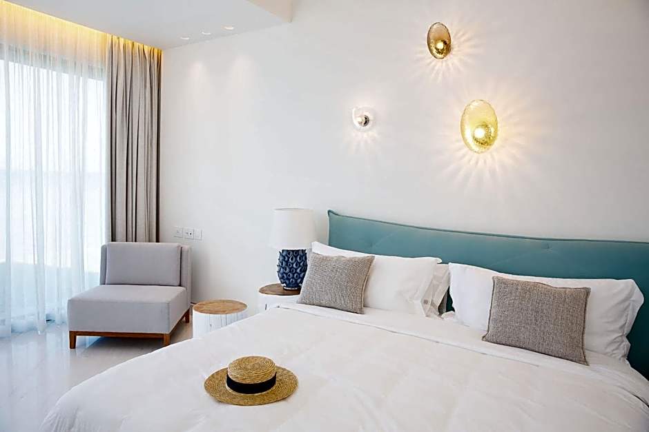 Located in the ‘Exclusive Area’ of the resort, directly on the waterfront, these eye-catching bedrooms are designed for aristocracy in tones of beige and ivory featuring a marble bathroom, bathtub and walk in shower. Outside your window, step off your furnished wooden deck down pearl marble steps and immerse yourself into the Ionian sea, landscaped into a one of its kind natural swimming pool. Part of the Haute Living Selection, they include a series of exclusive services such as - HLS Half Board, access to a members only HLS living Room, Dedicated HLS manager and upgraded welcome and bathroom amenities.