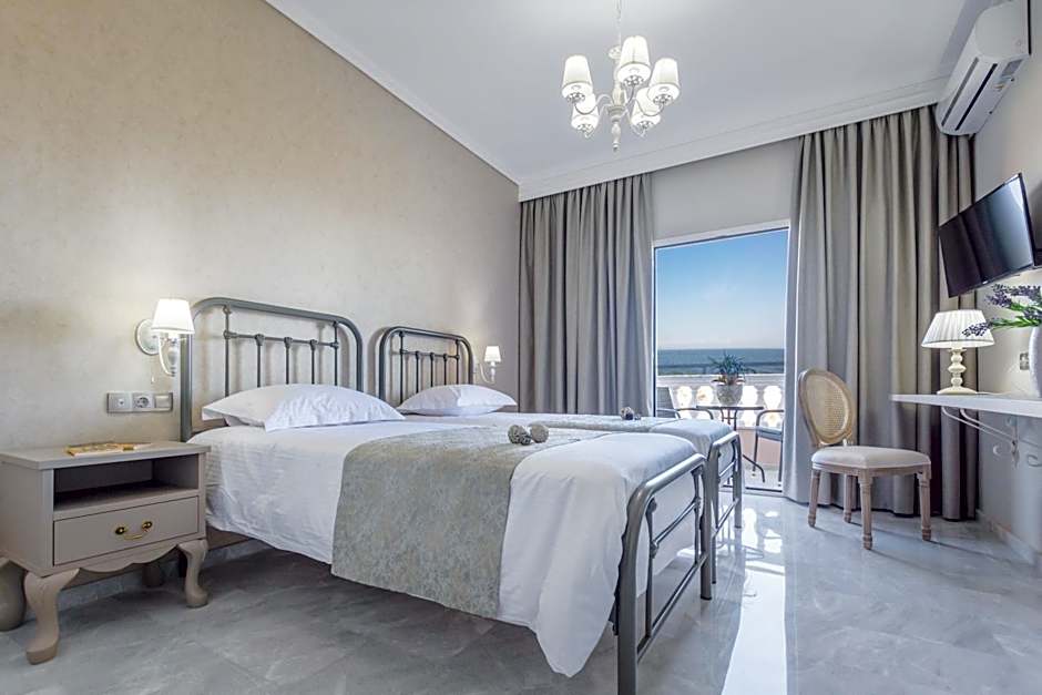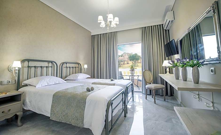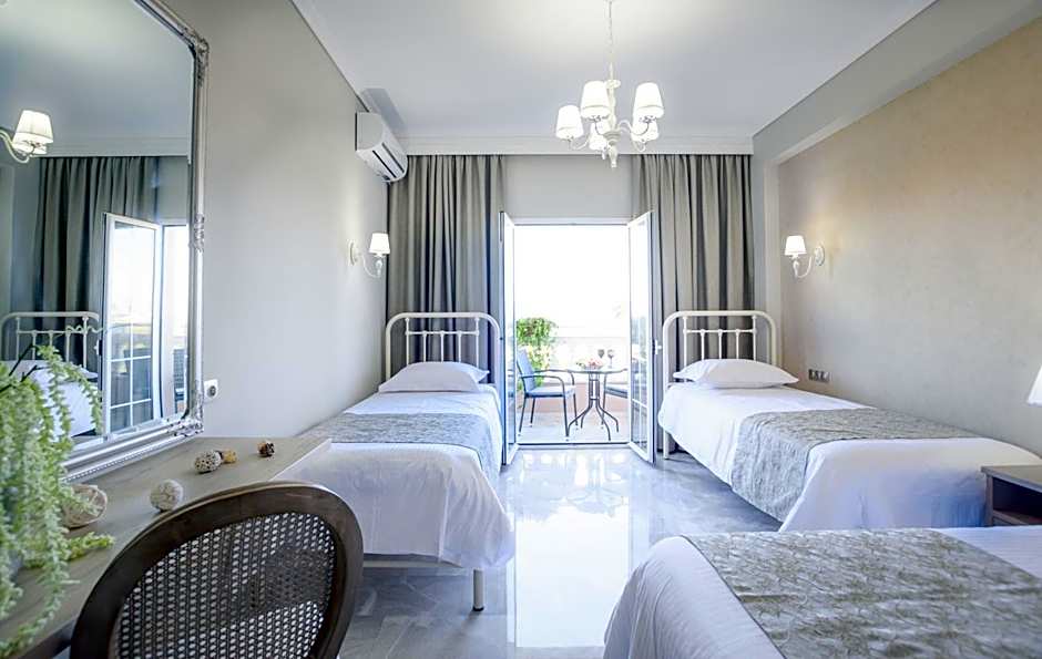 On the sun-kissed shores of Corfu, this beachfront haven sits along Main Street, about 20,1 миль from the island’s lively city center. An adults-only infinity pool glimmers seasonally beside the outdoor area, while private parking sits right on site. The setting blends sun, sea, and simple comforts, inviting travelers to start the day with a dip and end it with a stroll along the beach.