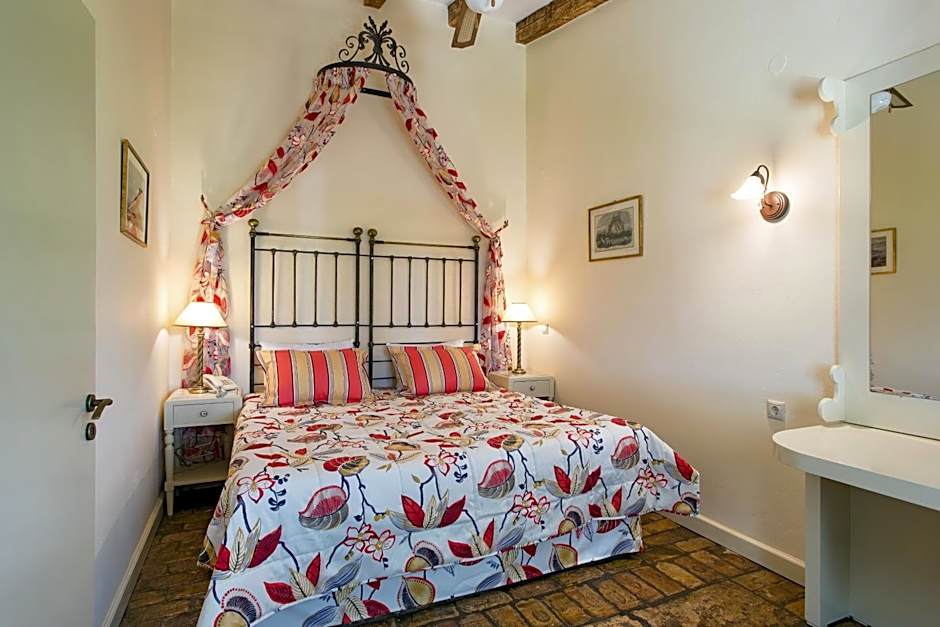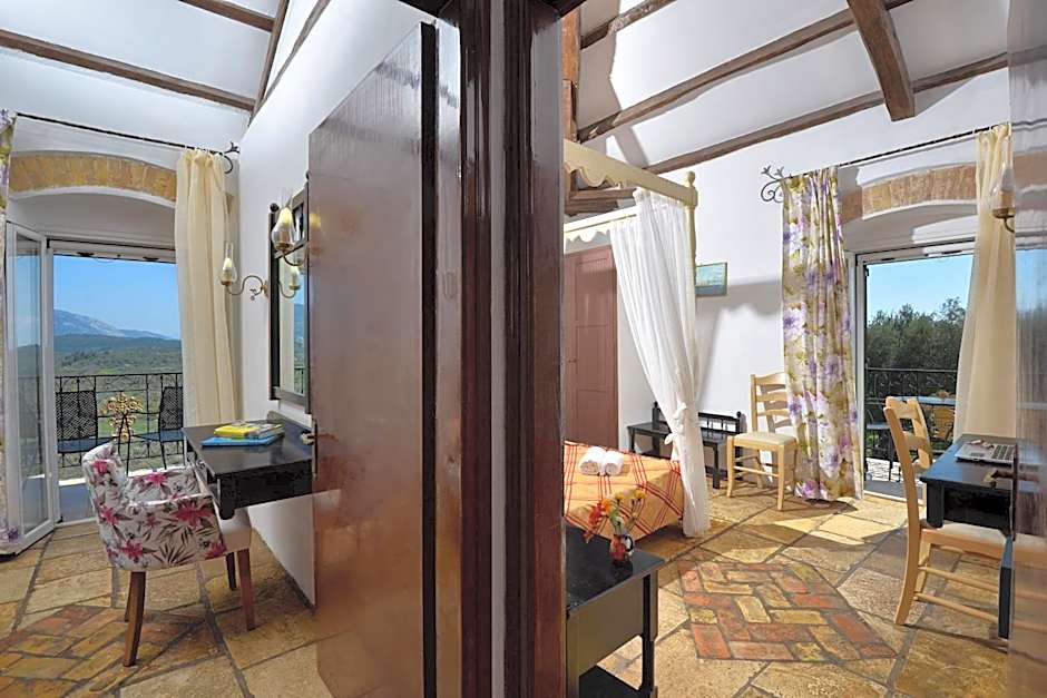 The hotel is in an ancient style in a quiet area surrounded by olive groves with a lovely view. Alex was very helpful and happy to help with everything we asked for, including suggestions for places to visit. Our room was very clean and tidy with a huge bed, and a kitchenette that allowed us to prepare our own breakfasts. On Wednesdays the hotel offers dinner with delicious traditional food. The atmosphere in the hotel is very pleasant and calm, and we will happily return to stay there.