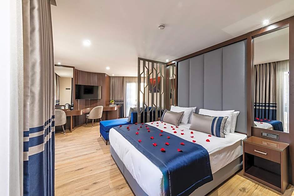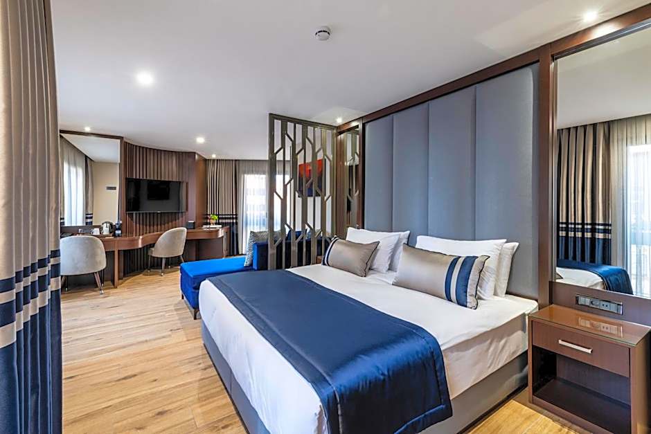 Ikos Dassia offers a variety of rooms including double rooms, family rooms, and suites. The occupancy can range from double occupancy in standard rooms to larger capacities in family rooms and suites, catering to different group sizes. Rooms are non-smoking and feature either a king-sized bed or twin beds, with room sizes varying depending on the room category.