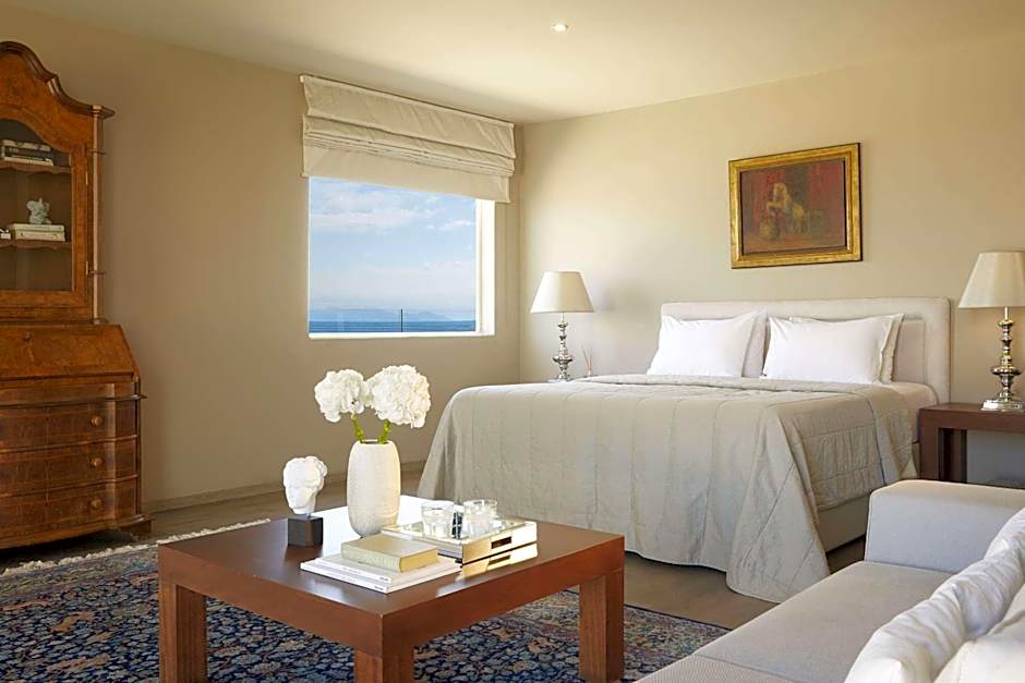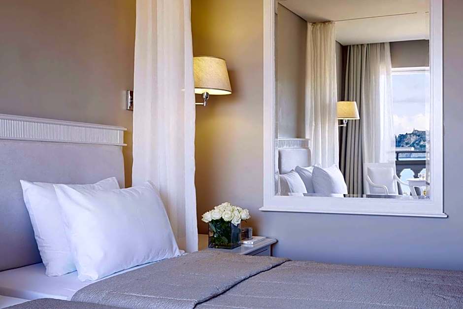 Offering classical style and generous proportions, this refurbished suite consists of 1 bedroom with either double bed or twin bed, living area and bathroom with bathtub. They all have veranda and can accommodate a 3rd or 4th person in a sofa bed. These suites offer panoramic view of the Ionian Sea and of the Venetian fort of Corfu Town.