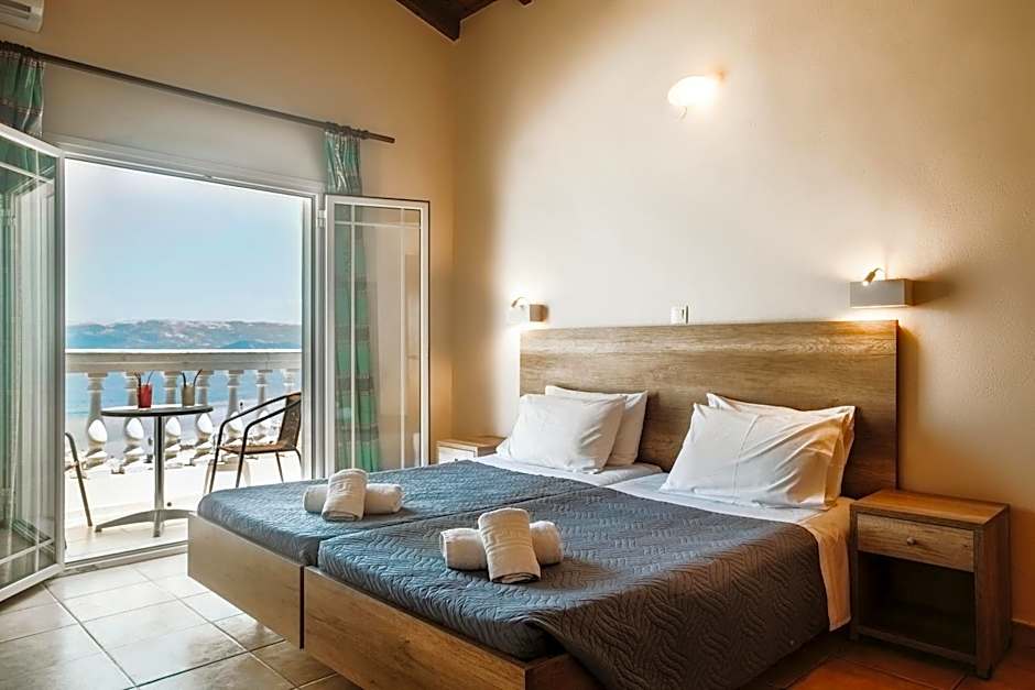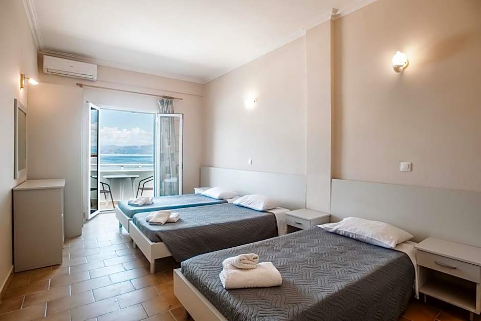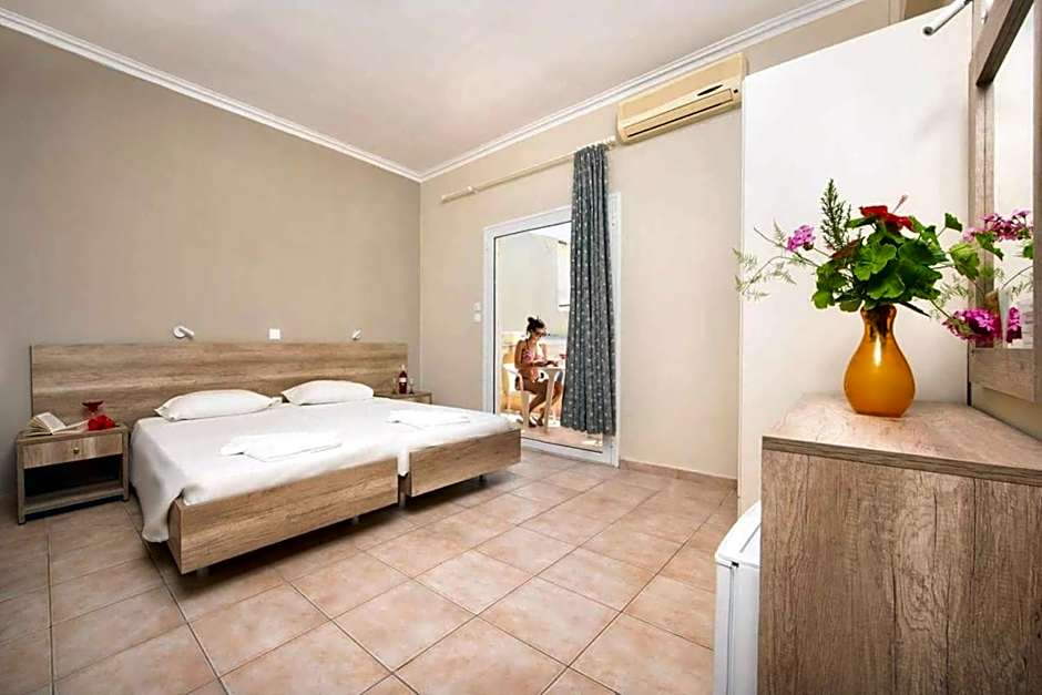 the staff was very kind and the room was big enough for 3 people. it also had a mini kitchen. the pool was beautiful and the beach was large. the hotel was near the principal attraction of Kavos and when you come they give you a 10% discount to spend in the central market.
