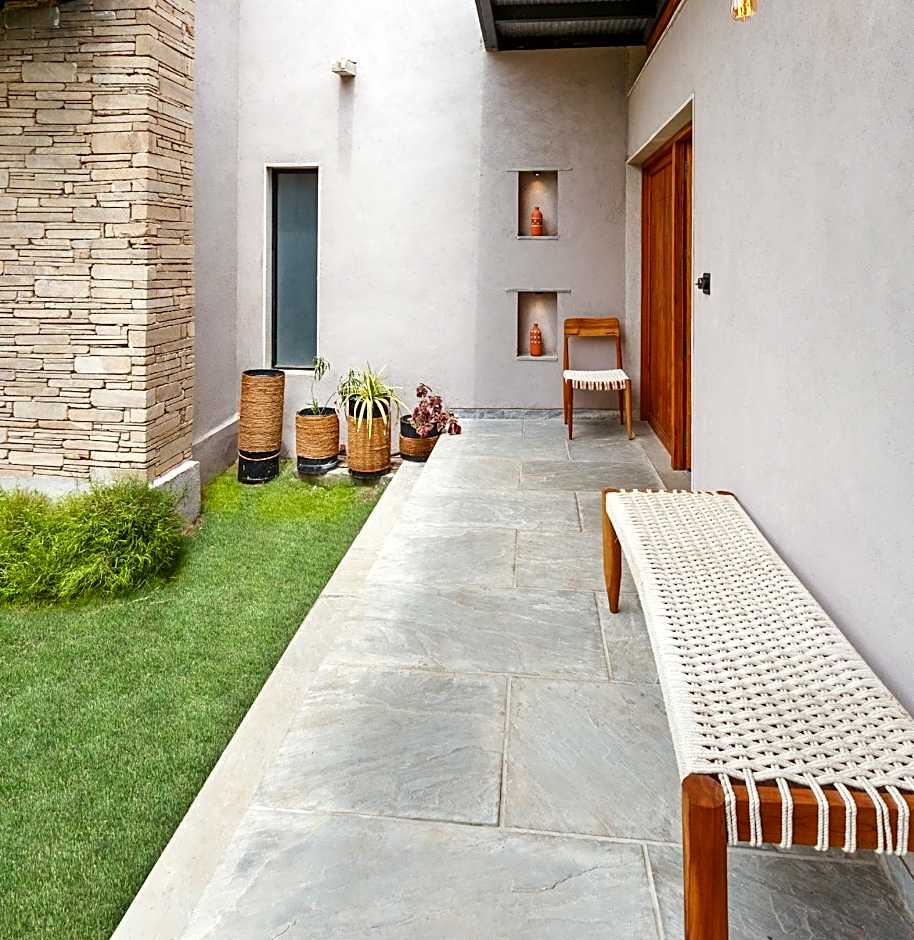 Spacious apartment with a large balcony overlooking the lush garden. Features a kitchenette with cooking rings, fridge and coffee machine.