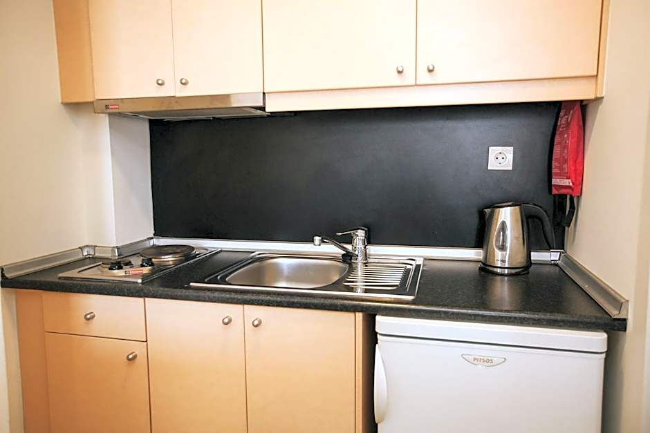 Spacious studio with a seating area, kitchenette and private bathroom.