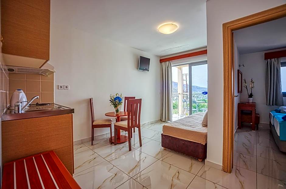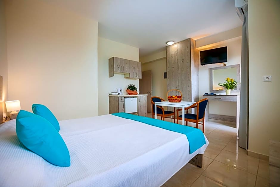 The hotel has one on-site restaurant called ARIADNI, offering a mix of International and European cuisines. The restaurant is family-friendly, suitable for guests of all ages.