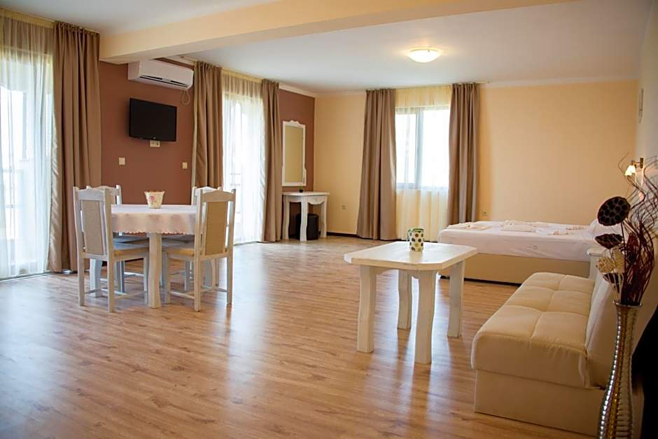 Accommodation options run from cozy studios to larger apartments, many with Sea View or City View. Notable configurations include Studio, Sea View; Suite Apartment, Sea View; Apartment, 1 Bedroom, City View; and Apartment Double Room, among others, delivering flexible layouts for different group sizes and travel styles.