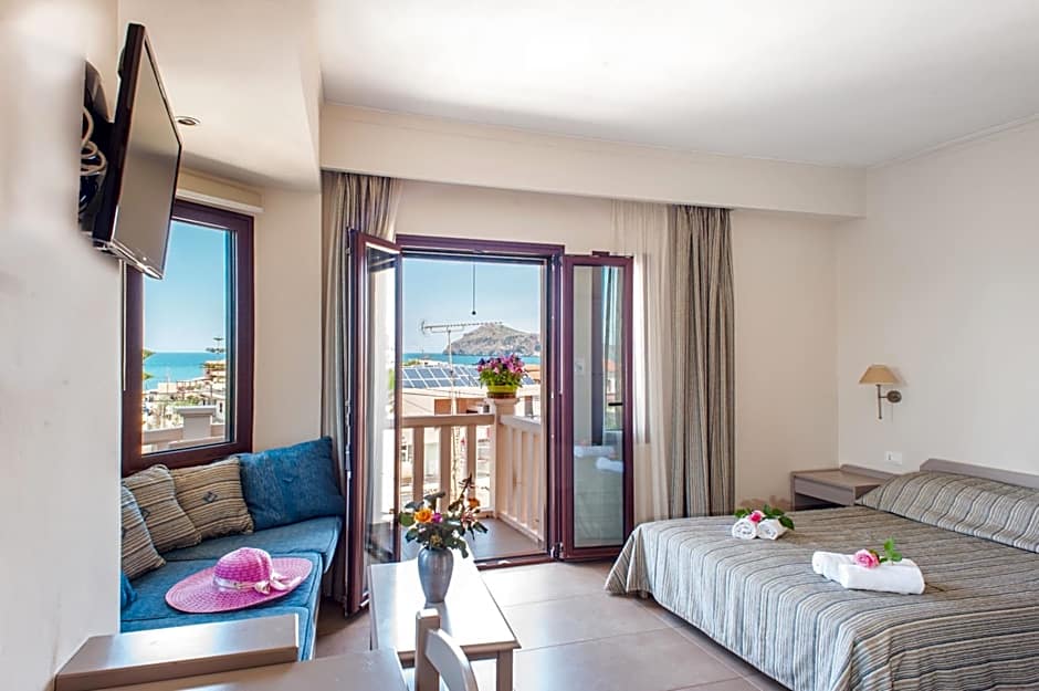 we stayed in the apartment with the jacuzzi! it was pure happiness! the view, the huuuge terrace, living room and bedroom 🤩🤩🤩 the staff was awesome, the cleanliness spot on! definitely nothing to complain! the location perfect in the center of platanias