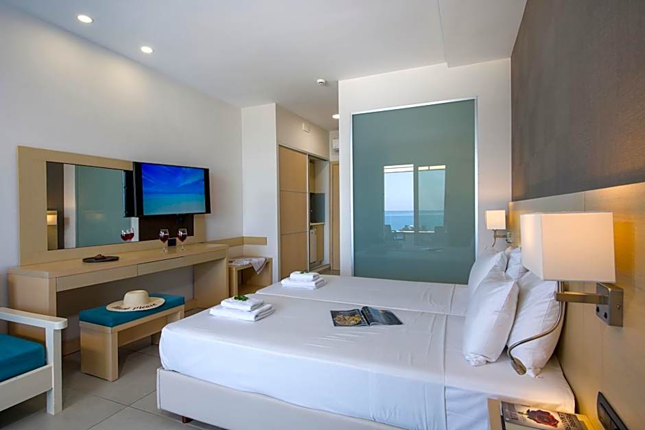 Dining options are a coastal treat, with Waves Restaurant offering Greek and Mediterranean flavors in moods ranging from family-friendly to romantic. For Italian favorites, Cugini The Italian Restaurant serves up dishes in settings that span family-friendly, modern, and romantic. Two outdoor pools sit by the sea, both adults-only and offering views, with the second pool featuring a shallow end for a lighter splash.