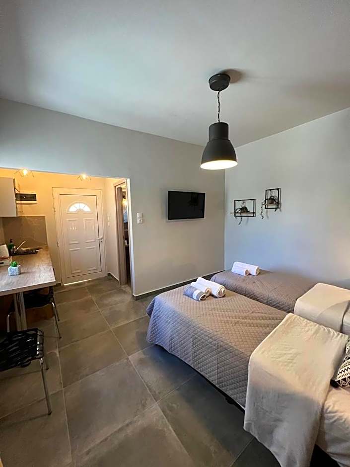 spacious, adjoining apartments, allowing for both closeness and privacy. Location suitable for stargazing in the KoRinthos area. Excellent wifi Comfortable beds. Easy street parking. Excellent water flow in the shower.