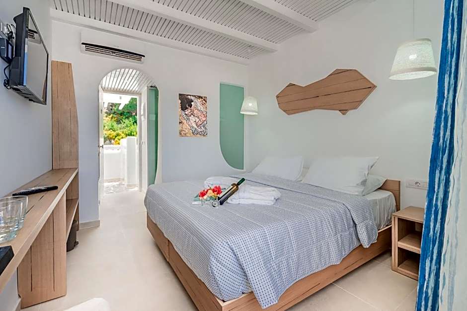 is a 4-star hotel in Faliraki, Greece, located from the city center. Address: Eparchiaki Odos Kalithion-Falirakiou. This adults-only retreat offers both a private pool and an outdoor swimming pool, plus a waterslide and streaming service (like Netflix) for downtime between excursions. Rooms feature air conditioning, soundproofing, a balcony with garden view, and free toiletries.