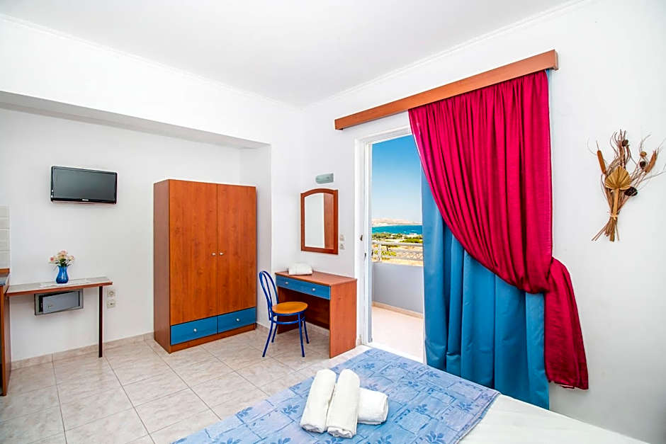 Loved the location very close to Anthony Quinn bay and walking distance to a lot of places. The pool area was quiet with plenty of loungers and umbrellas, a great place to relax. Breakfast was fairly basic but it did the job and was included in the already very reasonable price.