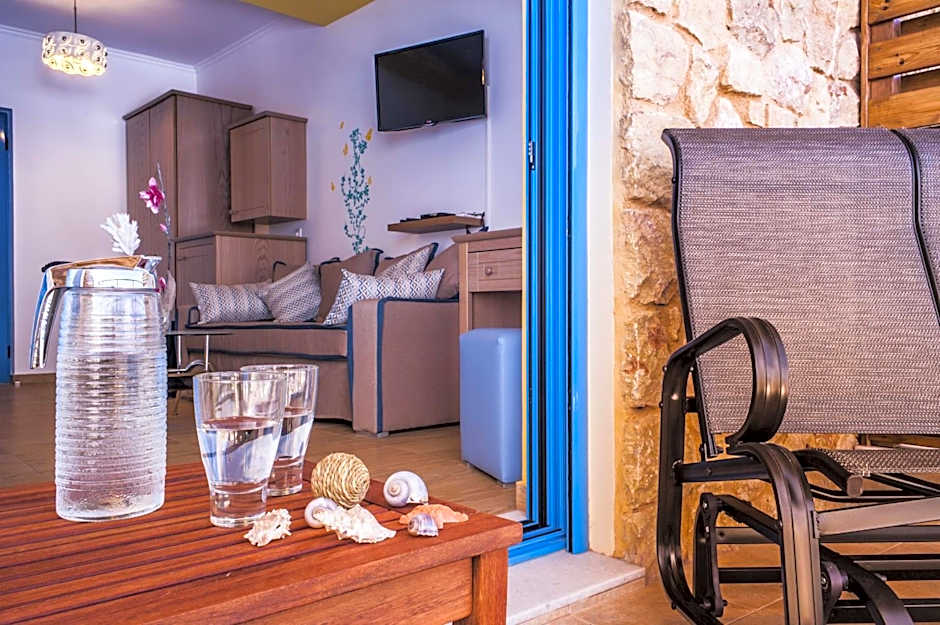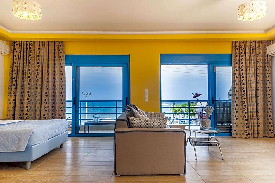 Superb!! Perfect location, everything is next door: beach, taxi, bus station, restaurants, main street with bars, shopping etc. are all within 50m. Perfectly clean, really spotless! Cleaning is every day with towel change. Very nice, friendly and always helpful staff. Thank you Petty, Gloria and Maria and the other ladies! Breakfast is various, plenty and very delicious including greek specialities, everyone can find a nice selection to his taste. The beds are nice, big and comfortable.