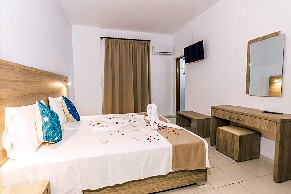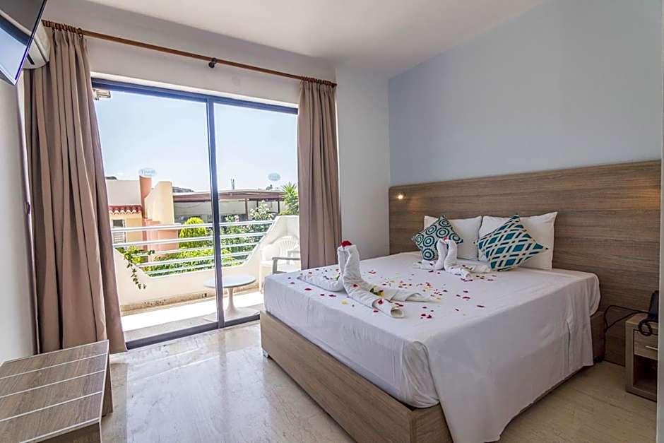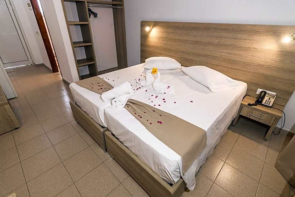 We had a little bit of trouble with our room first when we arrived, but the staff offered us a new bigger room immediately. There was also a small problem with the bathroom in the new room, but it got fixed the next morning which was great and left us satisfied. Also the hotel can be a bit far from the faliraki city center if going by foot, but with a car/scooter/bike it is easy to reach.