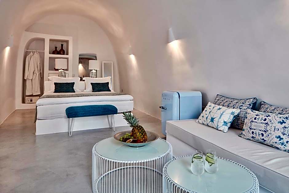 Featuring a 40-m² private split level terrace with Caldera View, this honeymoon suite has a private outdoor hot tub. It also includes a boudoir, a private entrance and a private balcony that can host a small wedding reception.