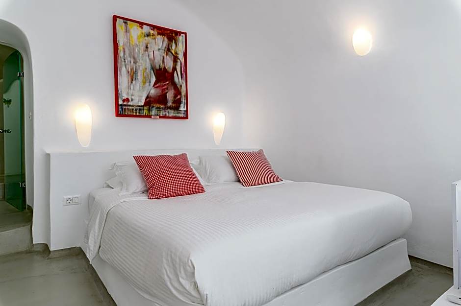 Offering views of the Caldera and the Aegean Sea from its rooftop veranda, this spacious suite features direct access to the heated cave pool with hydromassage facilities. It includes modern furnishings and air conditioning.