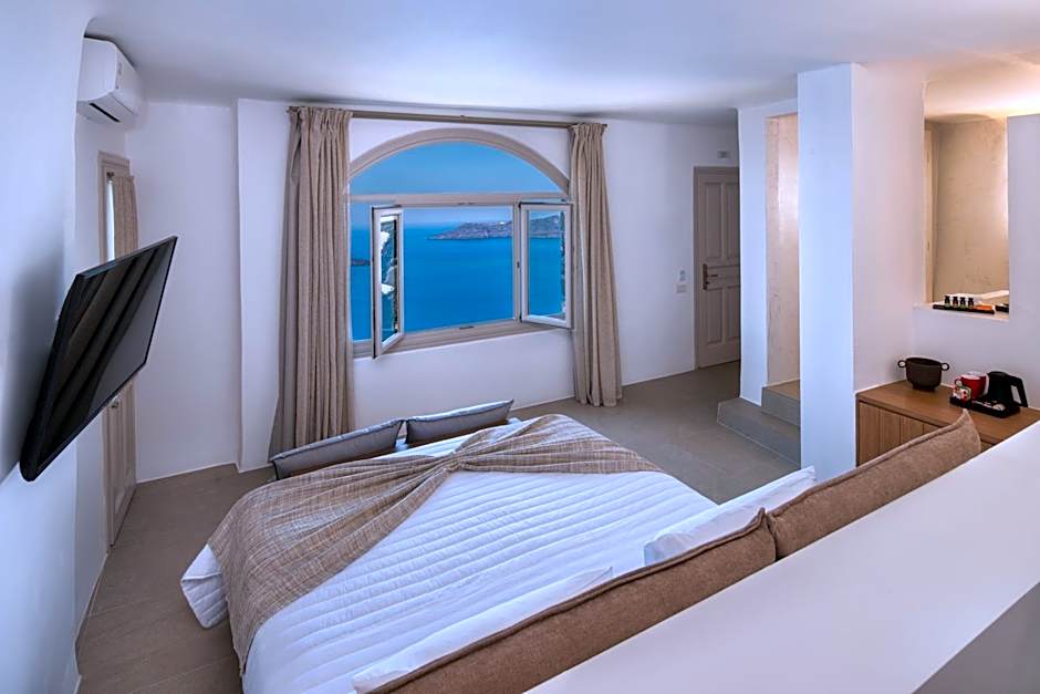The Exclusive Suite with the unobstructed caldera view offers total privacy, and has a balcony with an outdoor tub designed exclusively for the guests of the Exclusive Suite.