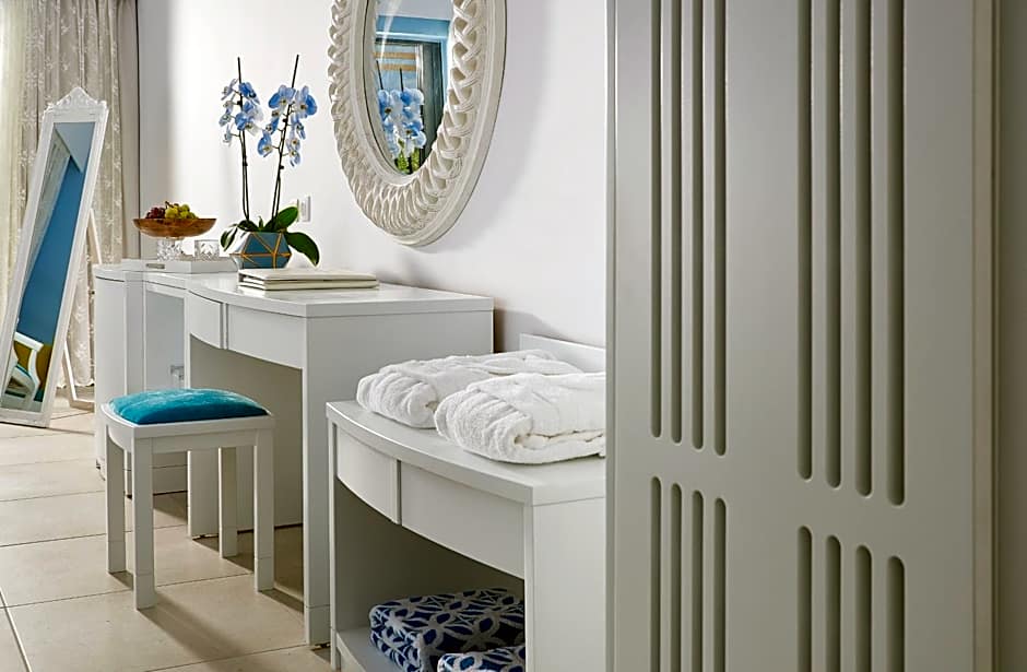 is a 5-star retreat perched along the Georgioupolis coast in Greece, just from the town center. The address is Kavros, Georgioupolis, Chania, Crete, Greece, placing it in a beachfront setting with a private beach area to stretch out and soak up the sun.