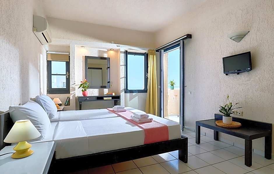 Perched along Gournes Beach Road, the beachfront setting puts the coastline and the town center within easy reach—about a stroll to shops and cafés after a day by the water. On-site Εστιατόριο #1 serves Greek cuisine in a family-friendly, traditional setting, pairing tasty flavors with that island charm. It’s a breezy, sun-soaked backdrop for mornings by the sea and evenings filled with local ambiance.