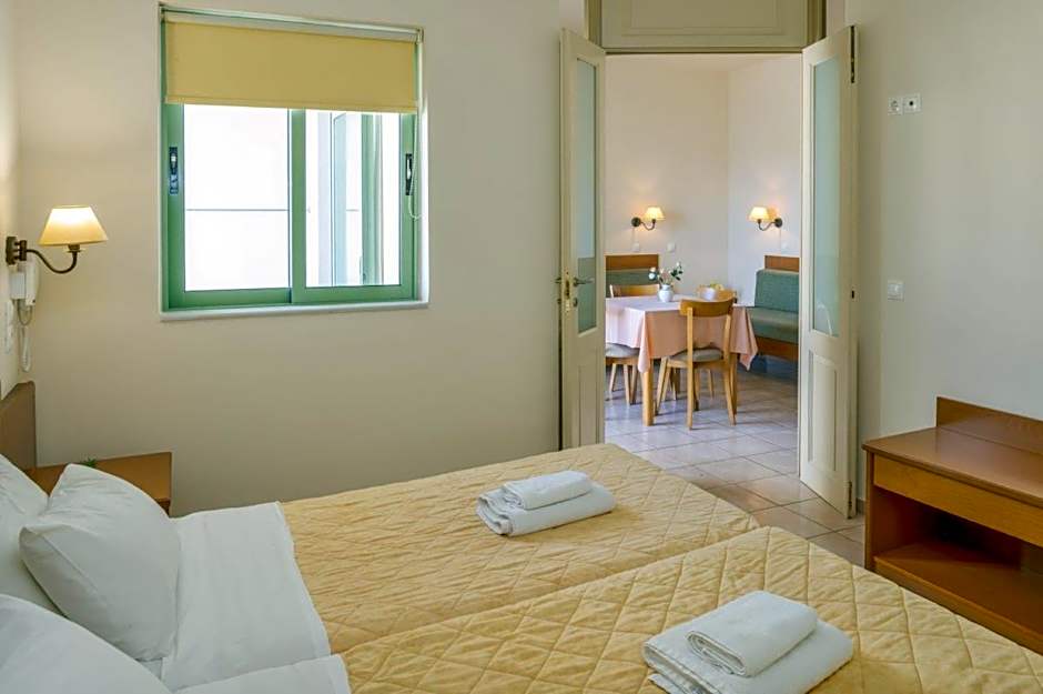 The apartment is at great location next to the beach. The owners were super helpful and kind. Were happy with us staying at the pool last day of our visit, even if we already checked out from our apartment! And not to forget to mention, treated us with Greek coffee & homemade Raki. Thank you again!