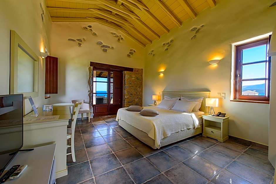 Traditionally decorated room with wood and stone features following the architectural style of Mani. It opens to a furnished balcony overlooking the Laconian Gulf and the surrounding olive groves. A satellite TV, air conditioning and free Wi-Fi are included. Please note that an extra bed cannot be accommodated in this room type.