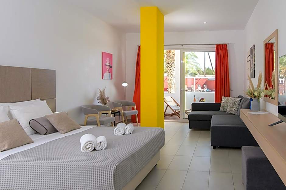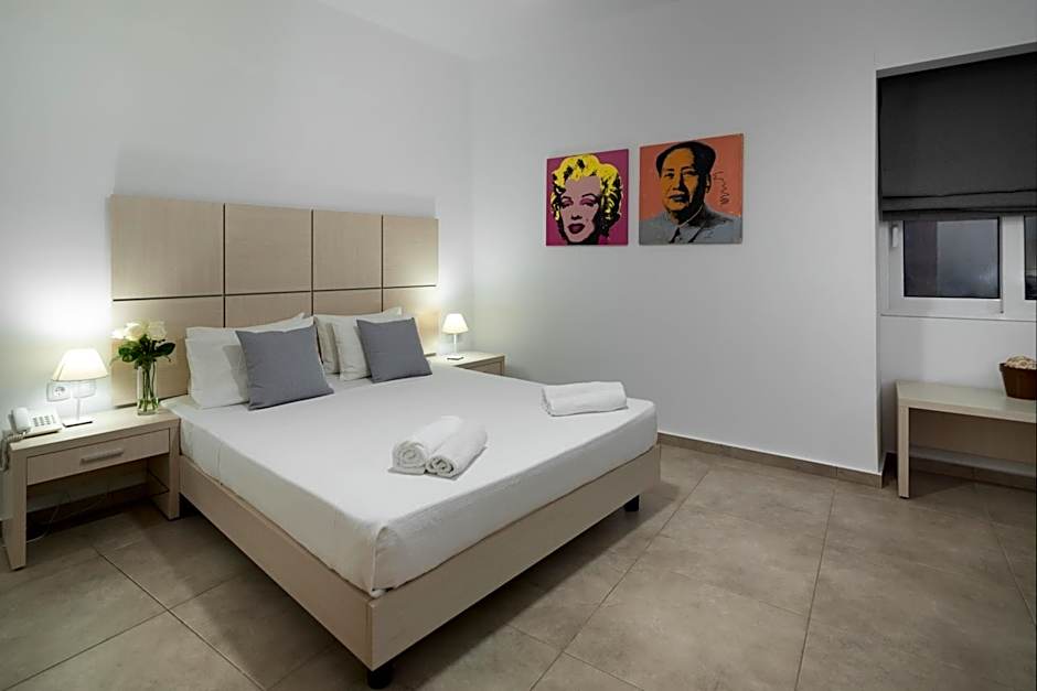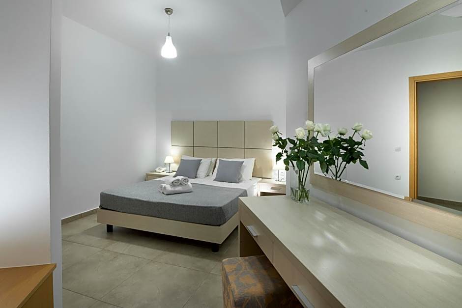 There is no capacity for extra bed in this room type. Family suites with sea view (~40m2, 1 Double Bed & 2 Single Beds) consist of two bedrooms, one with a double bed and one with two single beds. They are fully renovated and fully equipped with a flat satellite smart TV, independently controlled air conditioning, WI-FI, refrigerator, water kettle with tea/coffee bags, safe deposit box, hair dryer and a balcony with sea view!