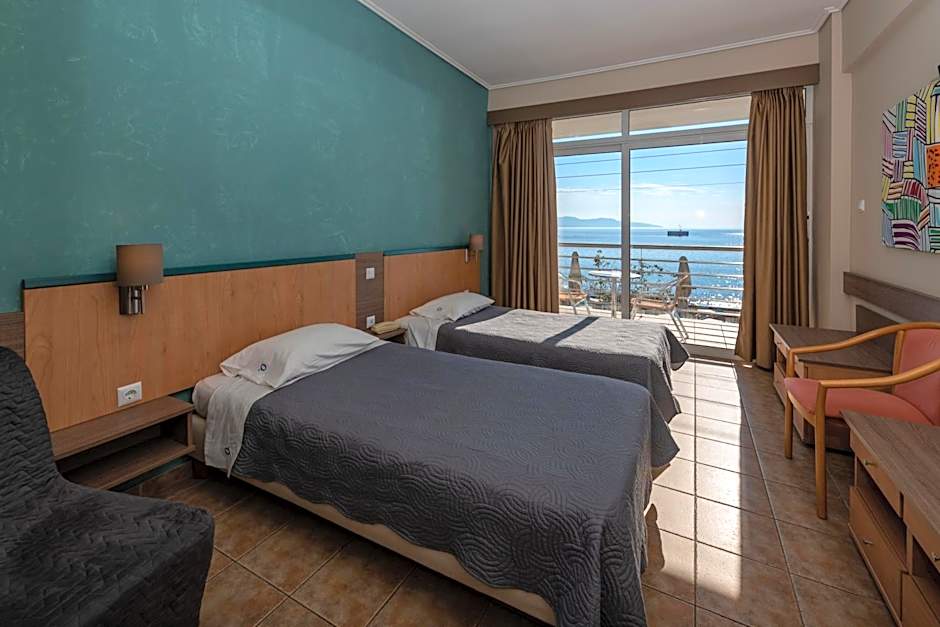 Offering panoramic views of the Messinian Bay from its furnished balcony, this room is fitted with either 2 single beds or a king-size bed. Bedding type is based on availability.